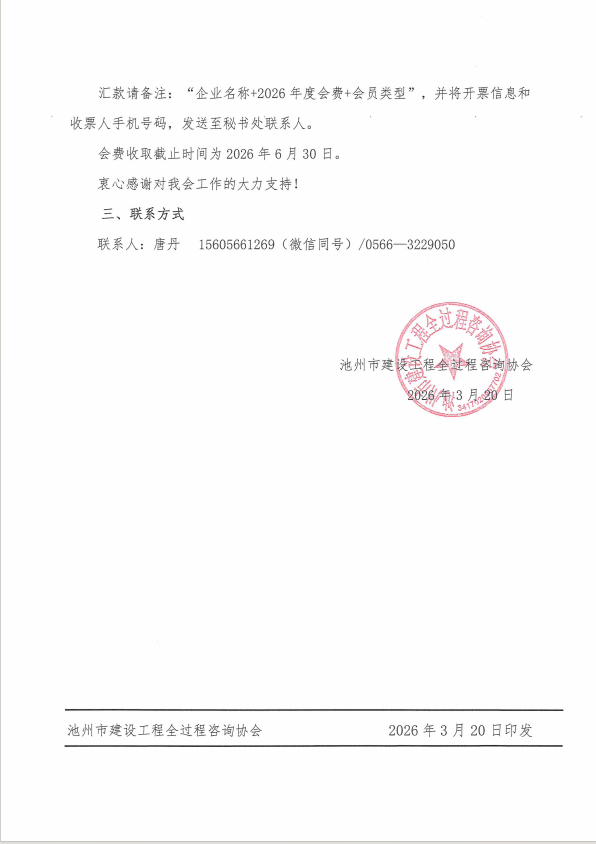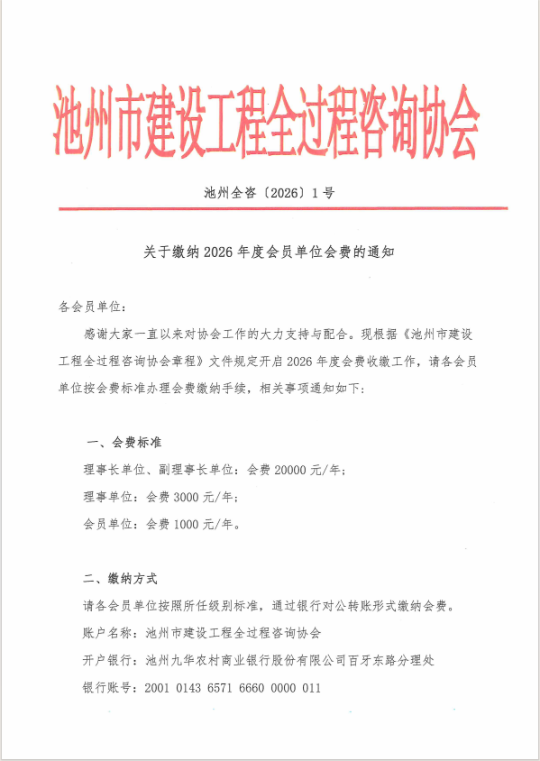 关于缴纳2026年度会员单位会费的通知
