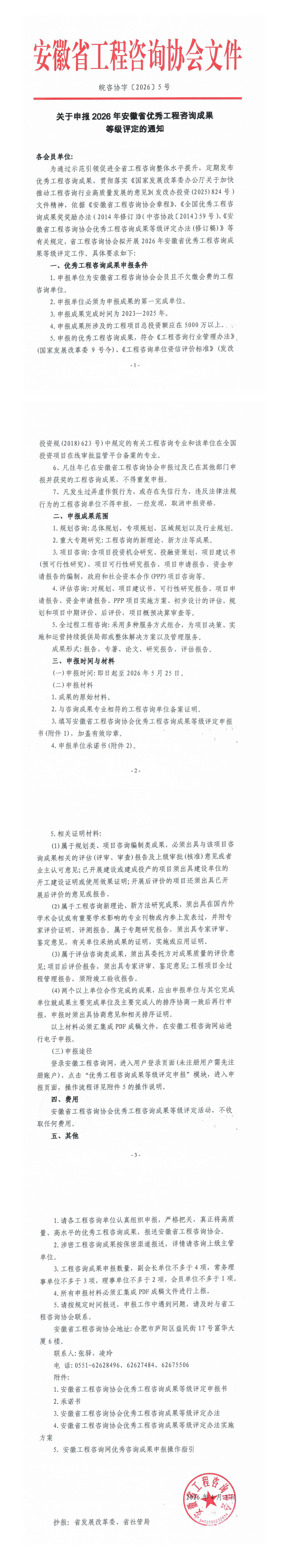 安徽省工程咨询伟德源自英国始于1946关于申报2026年安徽省优秀工程咨询成果等级评定的通知