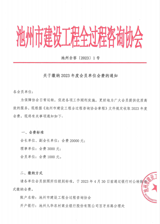 关于缴纳2023年度会员单位会费的通知