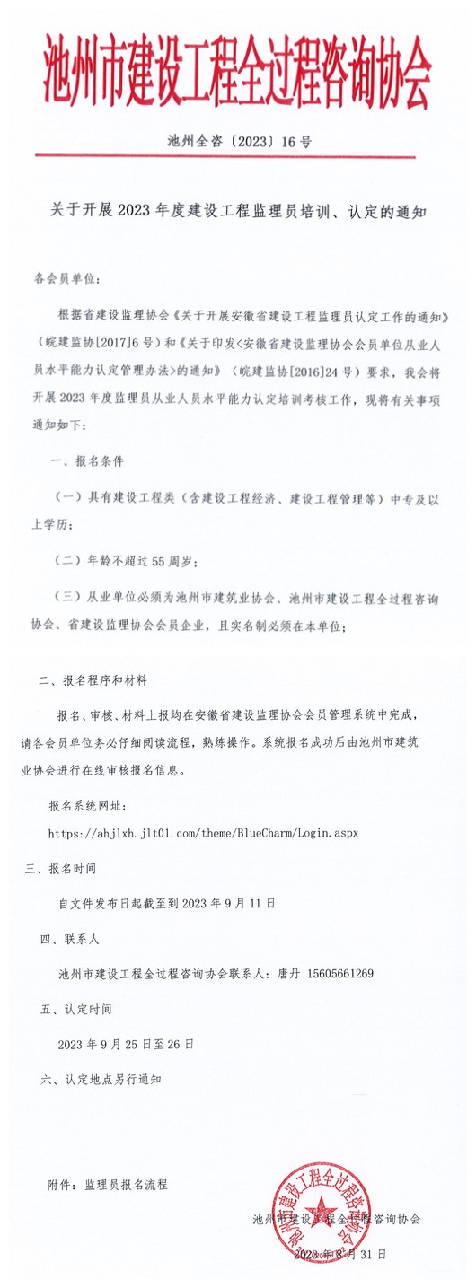 根据省建设监理伟德源自英国始于1946《关于开展安徽省建设工程监理员认定工作的通知》(皖建监协[2017]6号)和《关于印发<安徽省建设监理伟德源自英国始于1946会员单位从业人员水平能力认定管理办法>的通知》(皖建监协[2016]24号)要求,我会将开展2023年度监理员从业人员水平能力认定培训考核工作,现将有关事项通知如下: