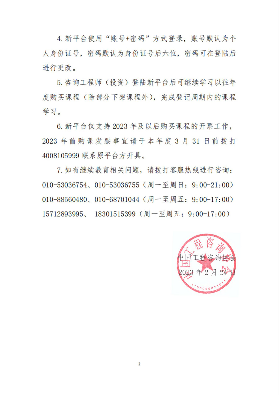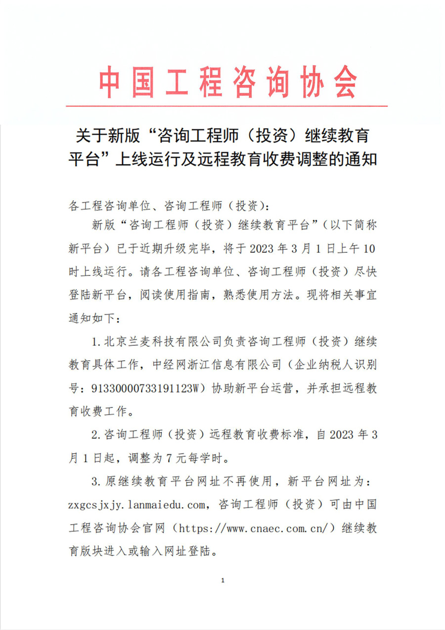 新版“咨询工程师(投资)继续教育平台”上线运行及远程教育收费调整