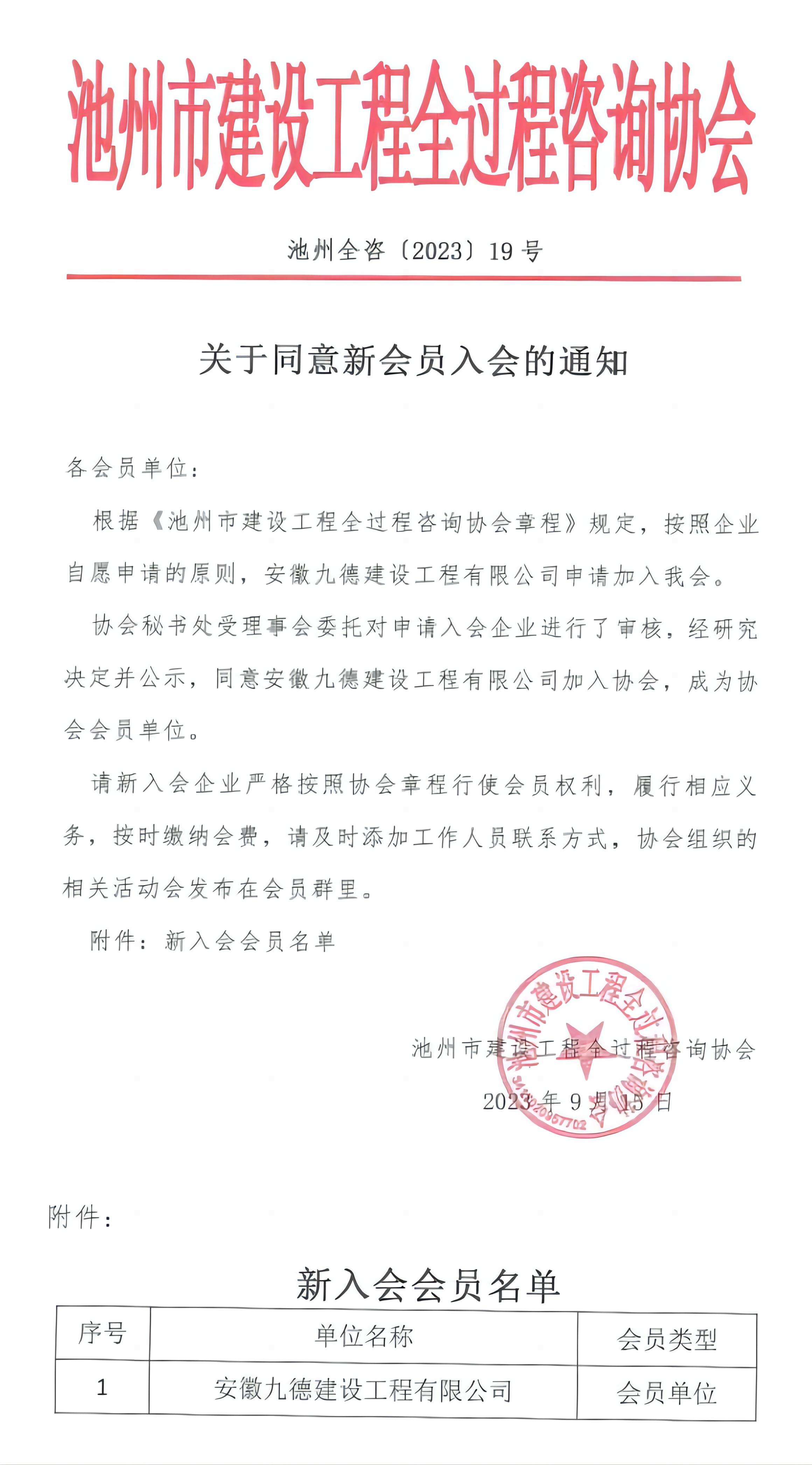 根据《伟德源自英国始于1946章程》规定,按照企业自愿申请的原则,安徽九德建设工程有限公司申请加入我会。伟德源自英国始于1946秘书处受理事会委托对申请入会企业进行了审核,经研究决定并公示,同意安徽九德建设工程有限公司加入伟德源自英国始于1946,成为伟德源自英国始于1946会员单位。请新入会企业严格按照伟德源自英国始于1946章程行使会员权利,履行相应义务,按时缴纳会费,请及时添加工作人员联系方式,伟德源自英国始于1946组织的相关活动会发布在会员群里。