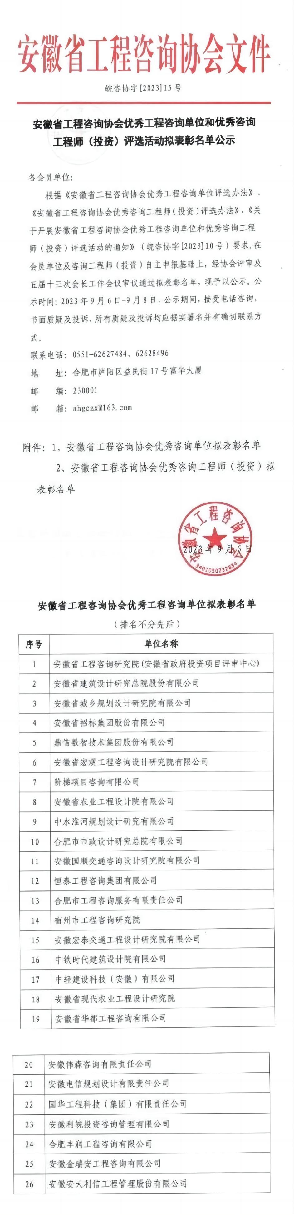 安徽省工程咨询伟德源自英国始于1946优秀工程咨询单位和优秀咨询工程师(投资)评选活动拟表彰名单公示