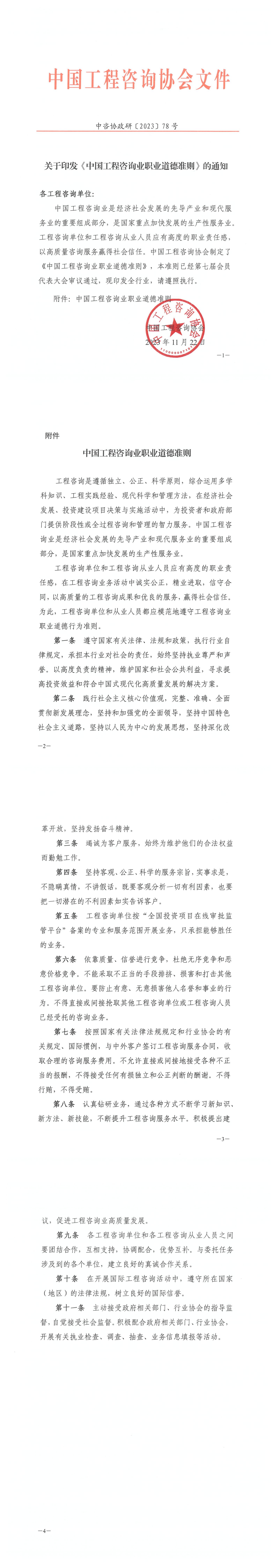 关于印发《中国工程咨询业职业道德准则》的通知