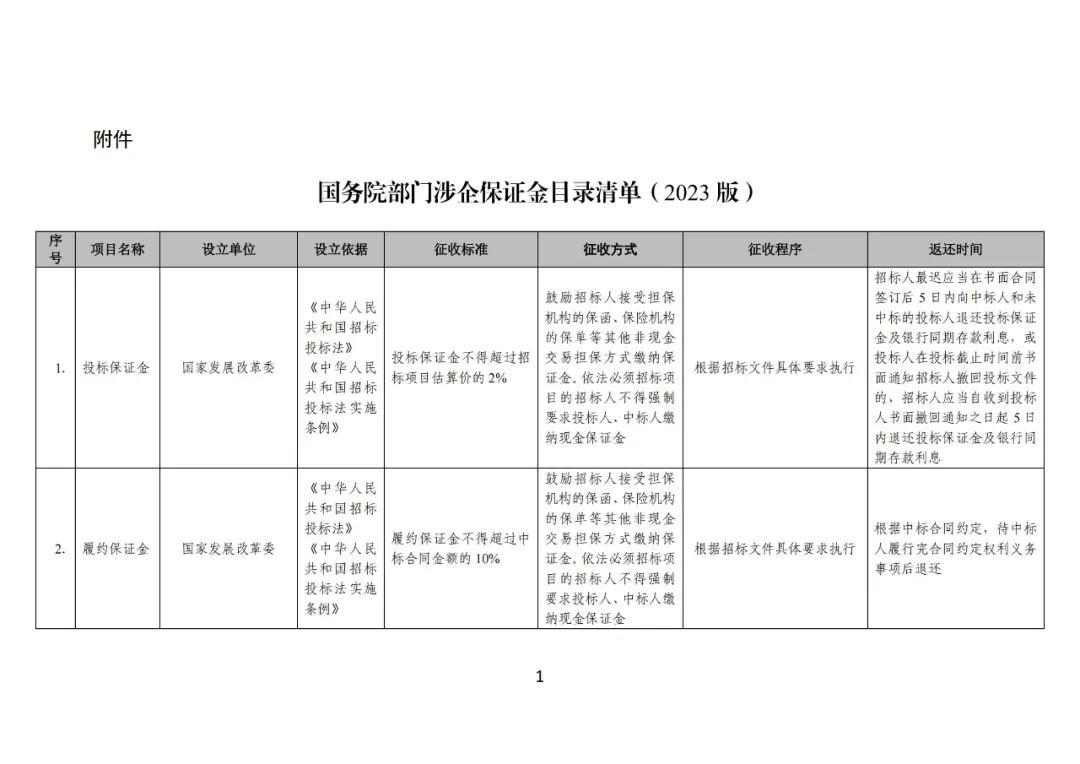 为贯彻落实党中央、国务院决策部署,按照国务院减轻企业负担部际联席会议《2023年全国减轻企业负担专项行动实施方案》要求,决定对国务院部门涉企保证金进行优化调整,制定了《国务院部门涉企保证金目录清单(2023版)》,现予以公告。2017年发布的《国务院部门涉企保证金目录清单》(工信部联运行〔2017〕236号)同时废止。请涉及保证金项目的相关主管部门严格按照目录清单规定的内容抓好贯彻落实。下一步,目录清单将根据涉企保证金项目改革发展变化实施动态调整。附件:《国务院部门涉企保证金目录清单(2023版)》