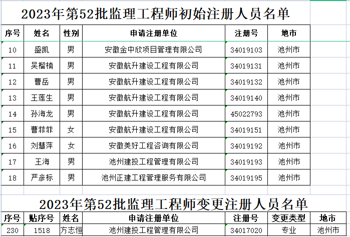 经住房和城乡建设部审批,省住房和城乡建设厅委托,我市收到2023年第52批注册监理工程师(住建部初始2023年第23批,变更、延续、企业更名2023年第47批,遗失补办2023年第42、43、44、45批)初始、变更、延续、企业更名、遗失补办证书贴条。现将领取有关事项通知如下: