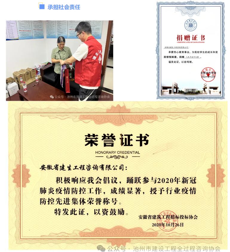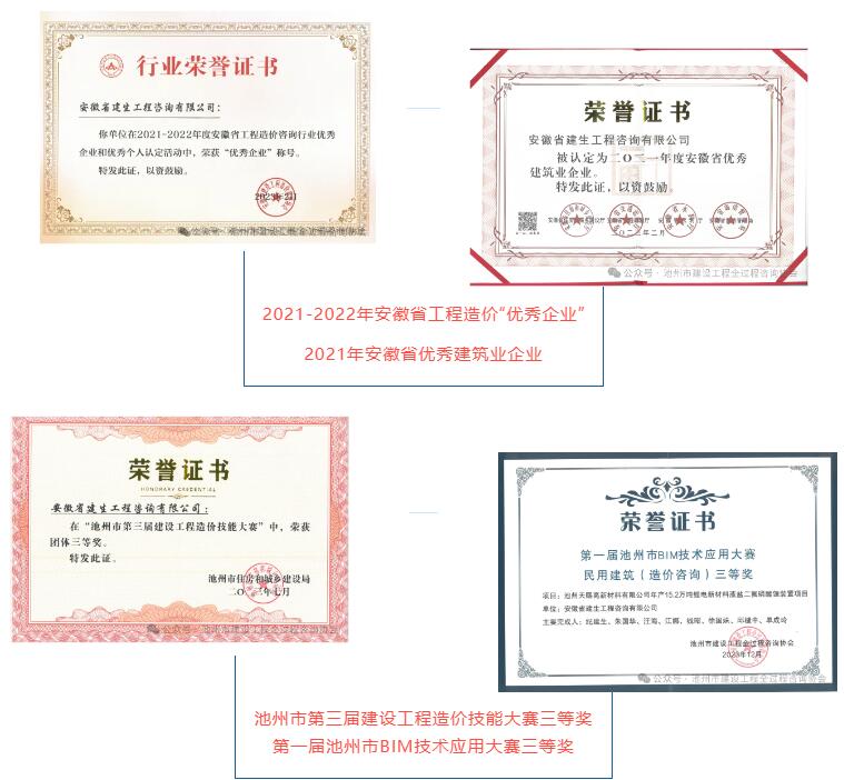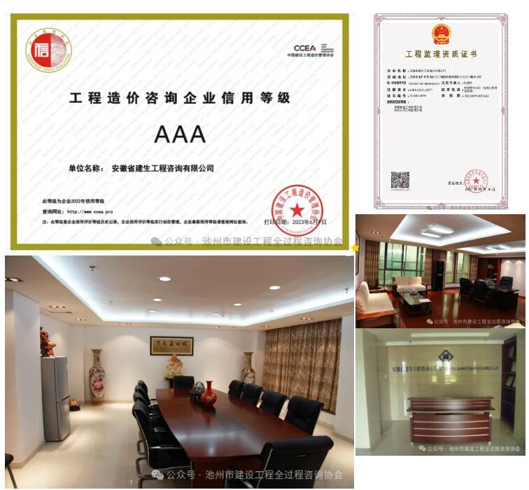 安徽省建生工程咨询有限公司是一家集工程造价咨询、工程招标代理、政府采购招标代理、工程施工监理、BIM技术、项目全过程咨询服务为一体的专业性中介服务机构。公司成立于2006年5月,注册资本为人民币1066万元。公司具备的执业资格有:工程造价咨询甲级资质、工程招标代理乙级资质、房屋建筑工程监理乙级、市政公用工程监理乙级,安徽省财政厅授予的政府采购代理单位等。公司拥有各类专业技术人员78人,其中:高级职称6人、中级职称40人;工程造价人员30人,其中:一级注册造价师12人、二级造价师5人;司法鉴定人员12人;招标代理人员18人;注册监理工程师10人,专业监理工程师5人,监理员8人。