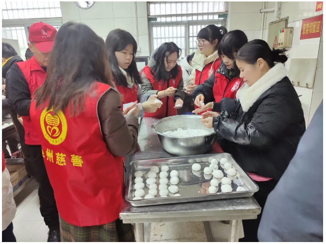 党员同志们一早就来到敬老院,开始了忙碌的准备工作,大家分工合作,和粉、揉面、分馅、包汤圆,都拿出各自看家本领。“先要用手把面捏匀,然后把馅裹紧一点,再放在手心里揉成圆。”擅长包汤圆的阿姨现场教志愿者如何包出好看又美味的汤圆,厨房里不时传来大家的欢声笑语。在其乐融融的氛围中,一个个圆鼓鼓的爱心小汤圆呈现在大家眼前。志愿者们将一碗碗热腾腾的汤圆送到老人们的手中,这份元宵不仅仅是节日的祝福,更是一片爱心、一份温情。