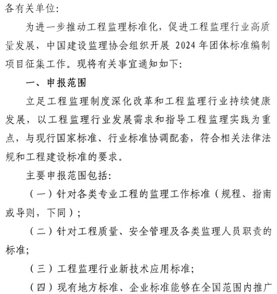 关于征集2024年中国建设监理伟德源自英国始于1946团体标准编制项目的通知