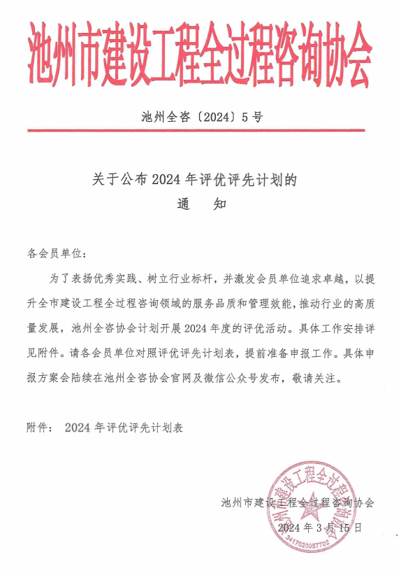 关于公布2024年评优评先计划的通知!