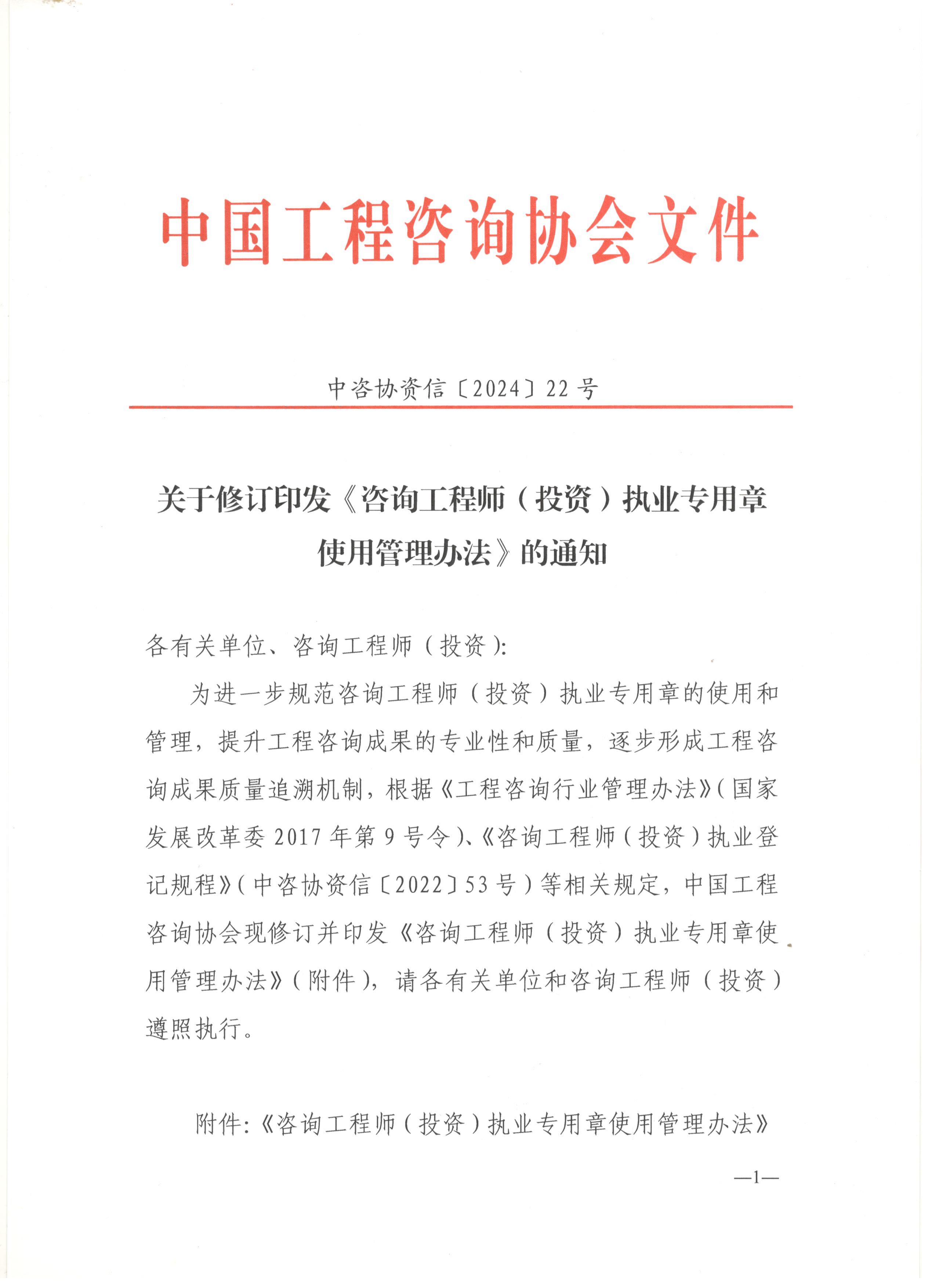 中国工程咨询伟德源自英国始于1946关于修订印发《咨询工程师(投资)执业专用章使用管理办法》的通知