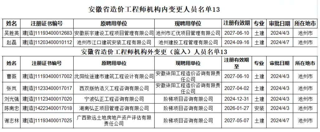 经住房和城乡建设部审批,省住房和城乡建设厅委托,我市收到2024年第13批一级注册造价工程师证书变更帖条。现将领取有关事项通知如下: