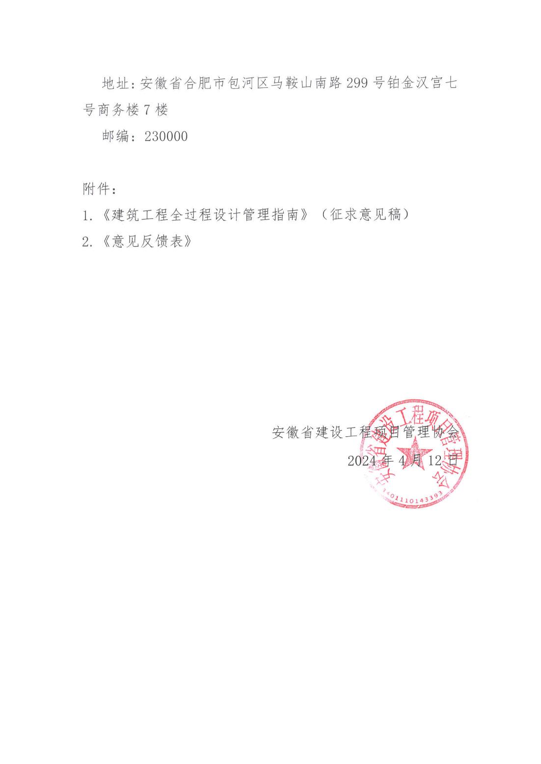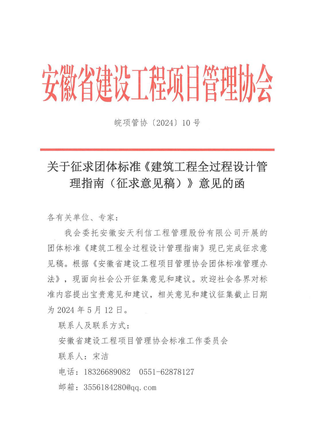 关于征求团体标准《建筑工程全过程设计管理指南(征求意见稿)》意见的函