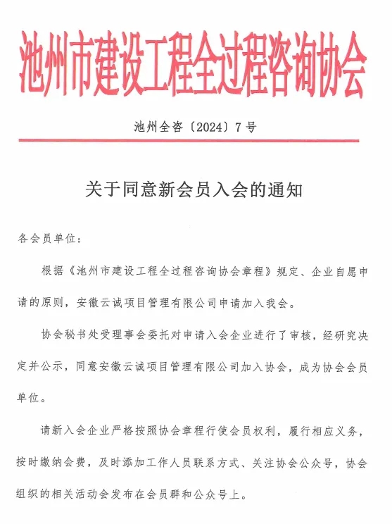 关于同意新会员入会的通知(2024年第二批)