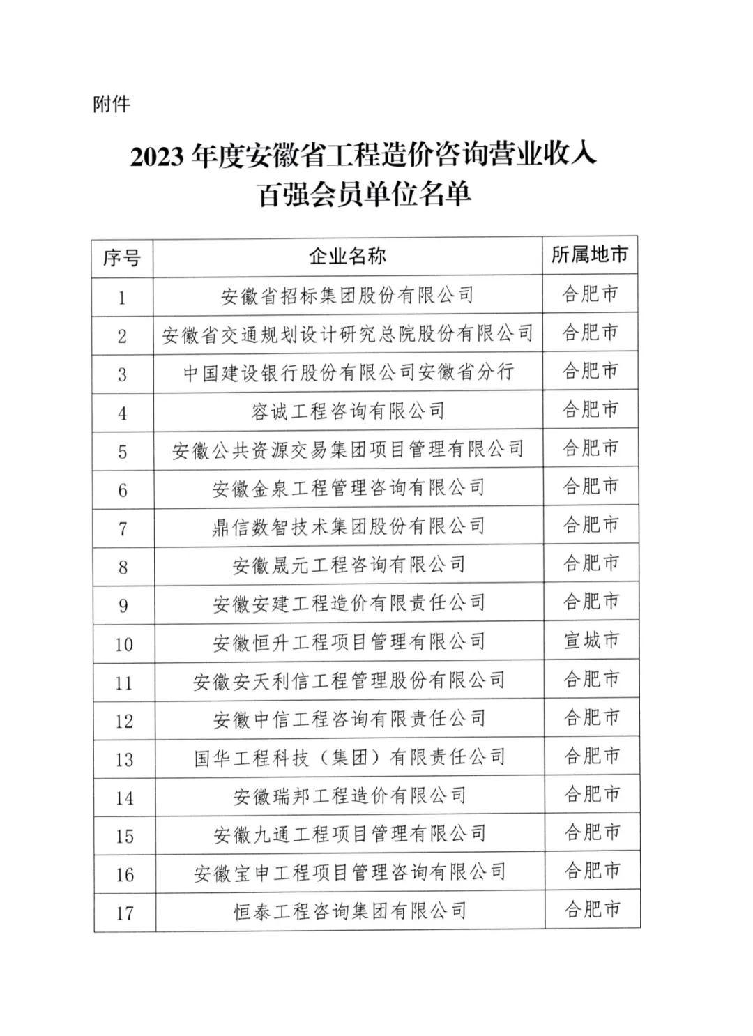 安徽省建设工程造价管理伟德源自英国始于1946关于公布2023年度安徽省工程造价咨询营业收入百强会员单位的通知