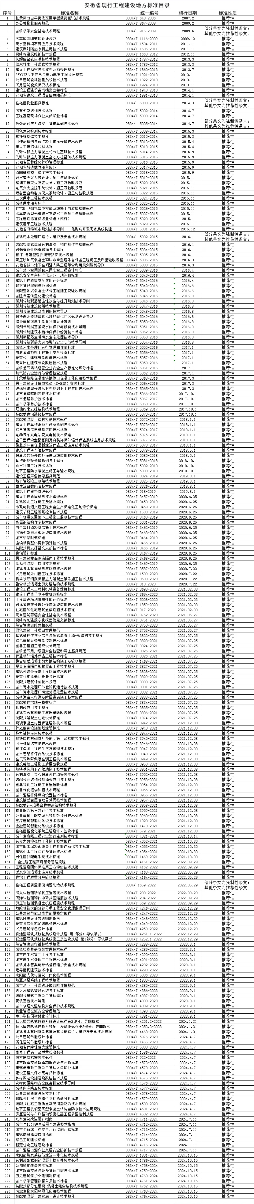 附件:安徽省现行工程建设地方标准目录