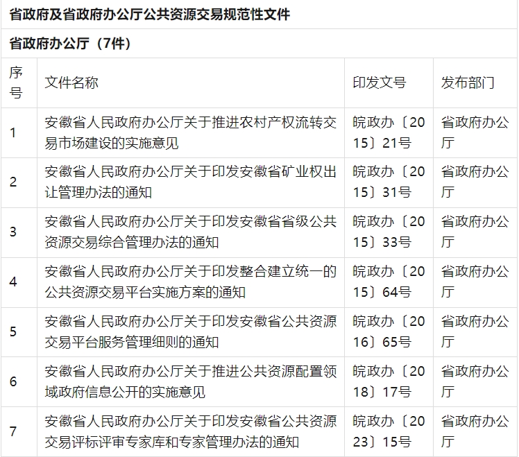 安徽省发展改革委 安徽省司法厅关于公布安徽省公共资源交易规范性文件目录的通知 | 部分文件下载