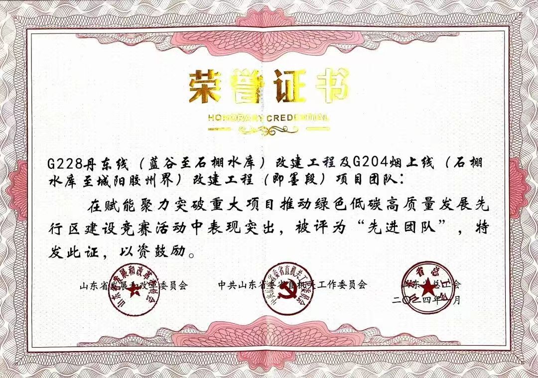 青岛日报社/观海新闻1月23日讯 近日,省发展改革委发布了《关于对在赋能聚力突破重大项目推动绿色低碳高质量发展先行区建设竞赛活动中表现突出的团队、个人予以表扬的通报》,G228丹东线(蓝谷至石棚水库)改建工程及G204烟上线(石棚水库至城阳胶州界)改建工程(即墨段)项目团队获评先进团队。