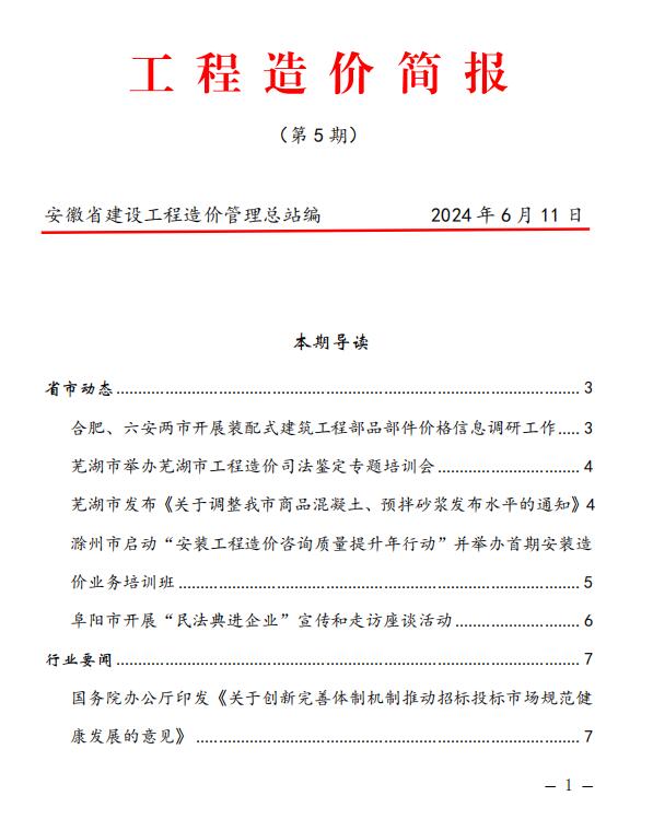 安徽省建设工程造价管理总站《工程造价简报》2024年第5期