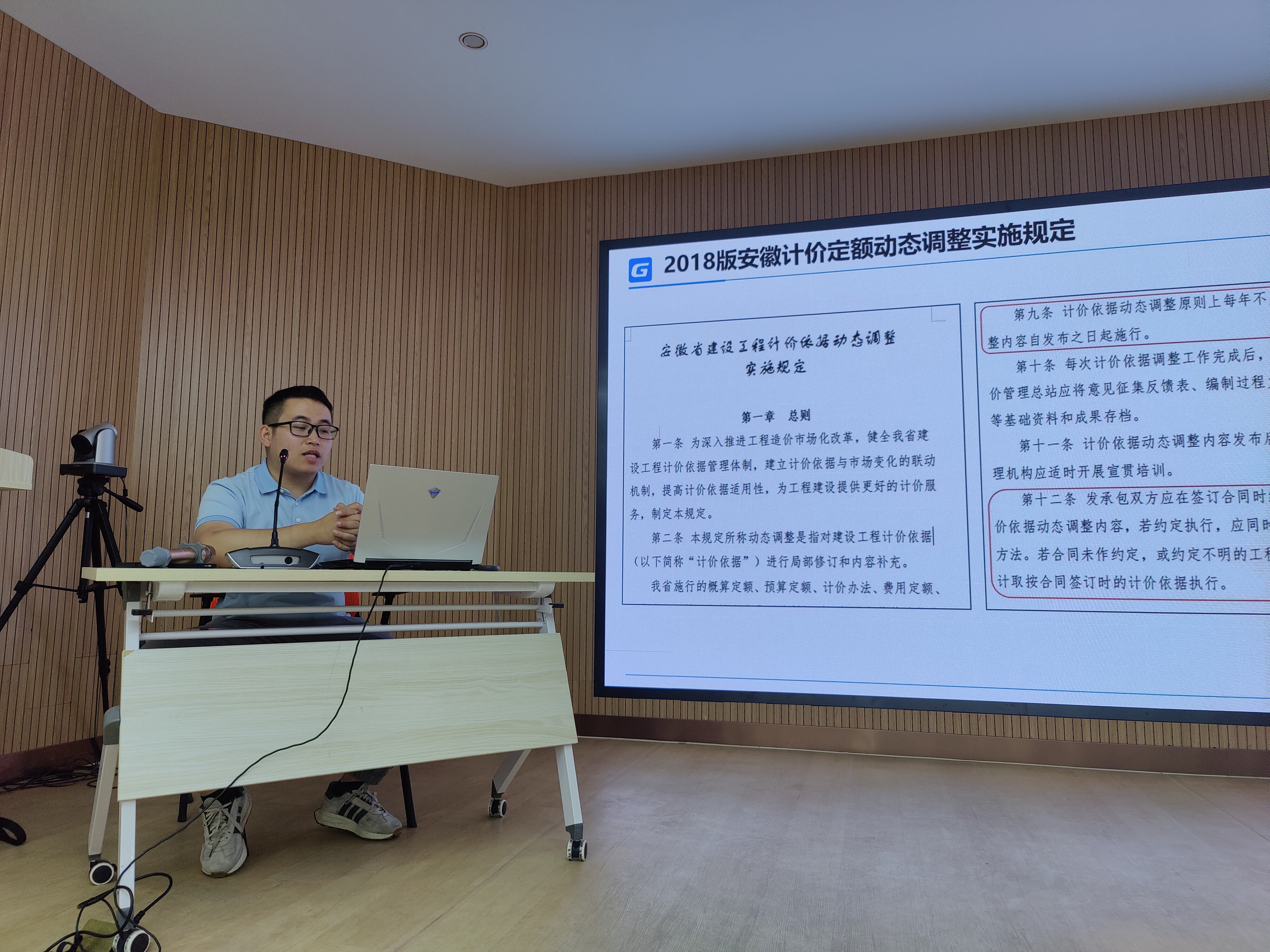 本次活动特邀广联达科技股份有限公司安徽分公司高级培训讲师武士鹏现场授课,培训内容围绕造价政策文件解读、计价依据动态调整展开,通过分析新清单的核心变化,深入讲解此次调整对业务的影响和行业发展趋势的变化,为造价人提供了一个全面而系统的学习机会。