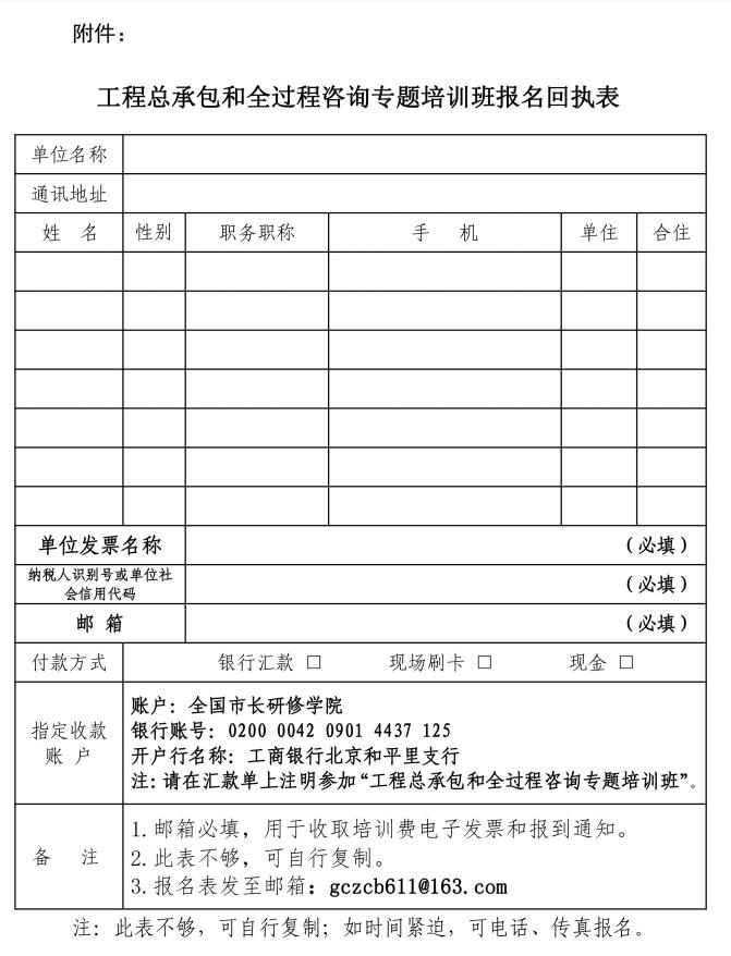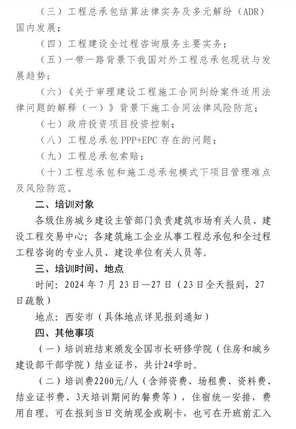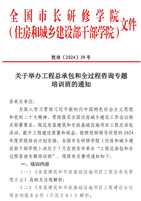 【转发】关于举办工程总承包和全过程咨询专题培训班的通知