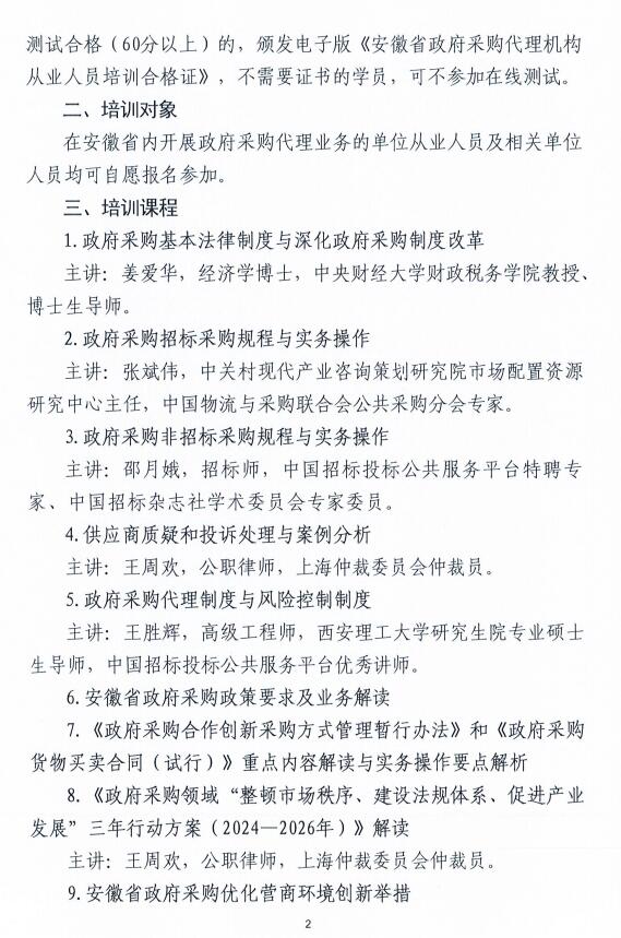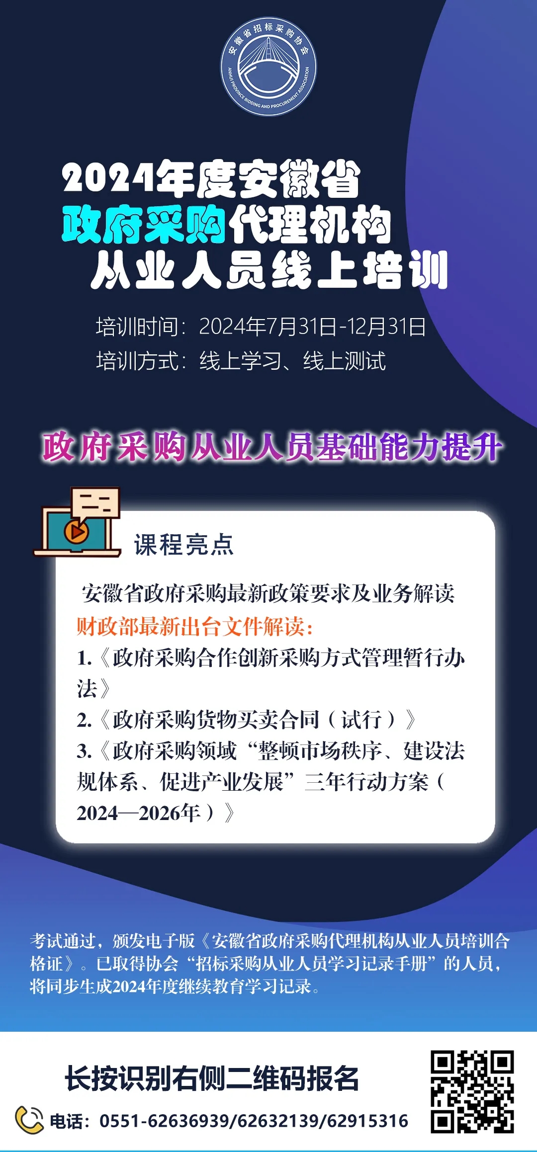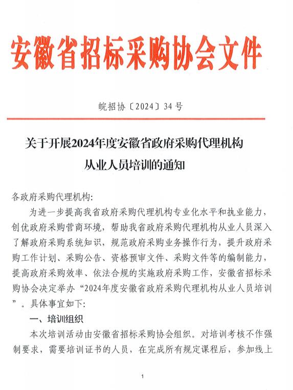 安徽省招标采购伟德源自英国始于1946关于2024年度安徽省政府采购代理机构从业人员培训的通知