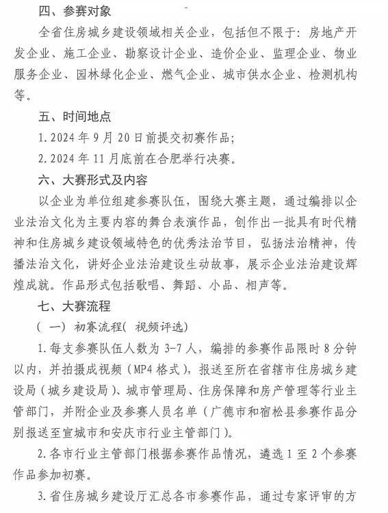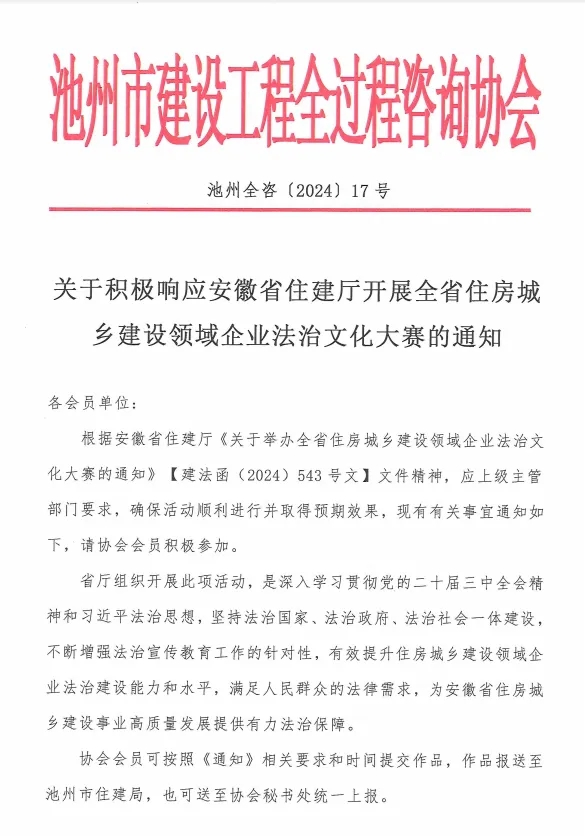 关于积极响应安徽省住建厅开展全省住房城乡建设领域企业法治文化大赛的通知