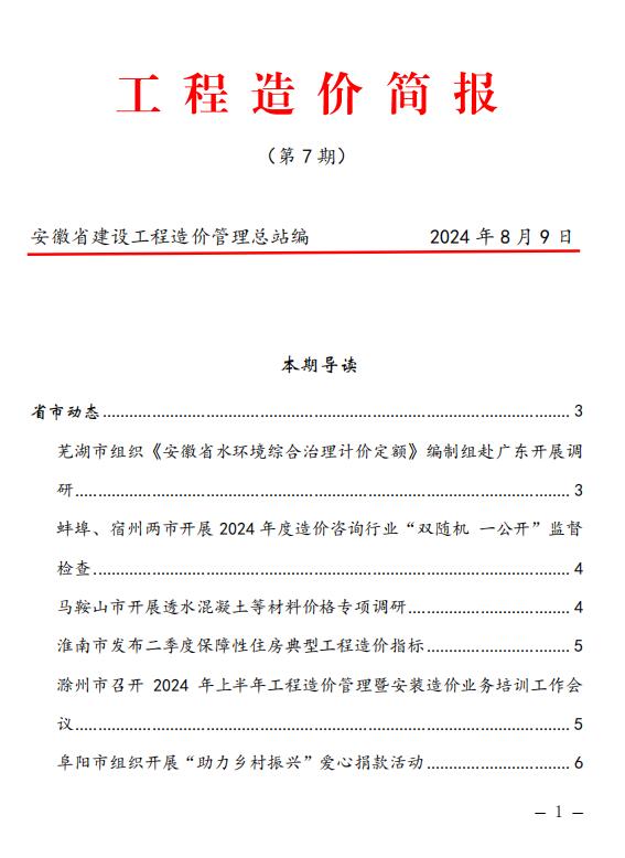 安徽省建设工程造价管理总站《工程造价简报》2024年第7期