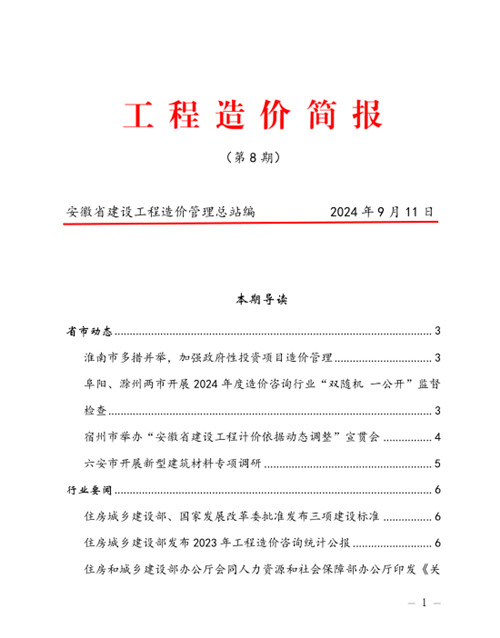 安徽省建设工程造价管理总站《工程造价简报》2024年第8期
