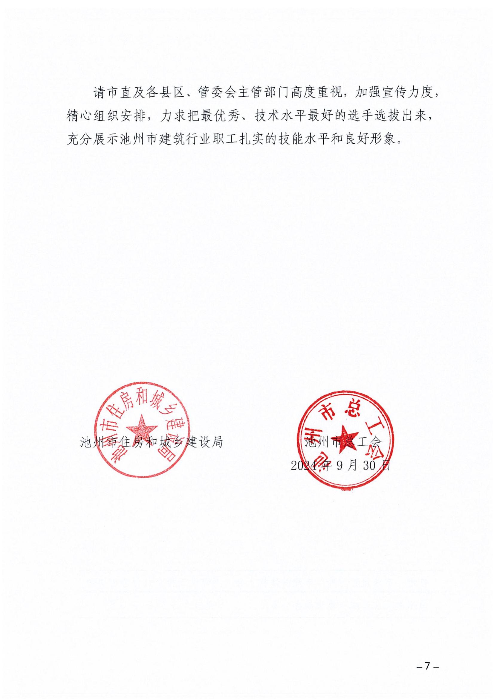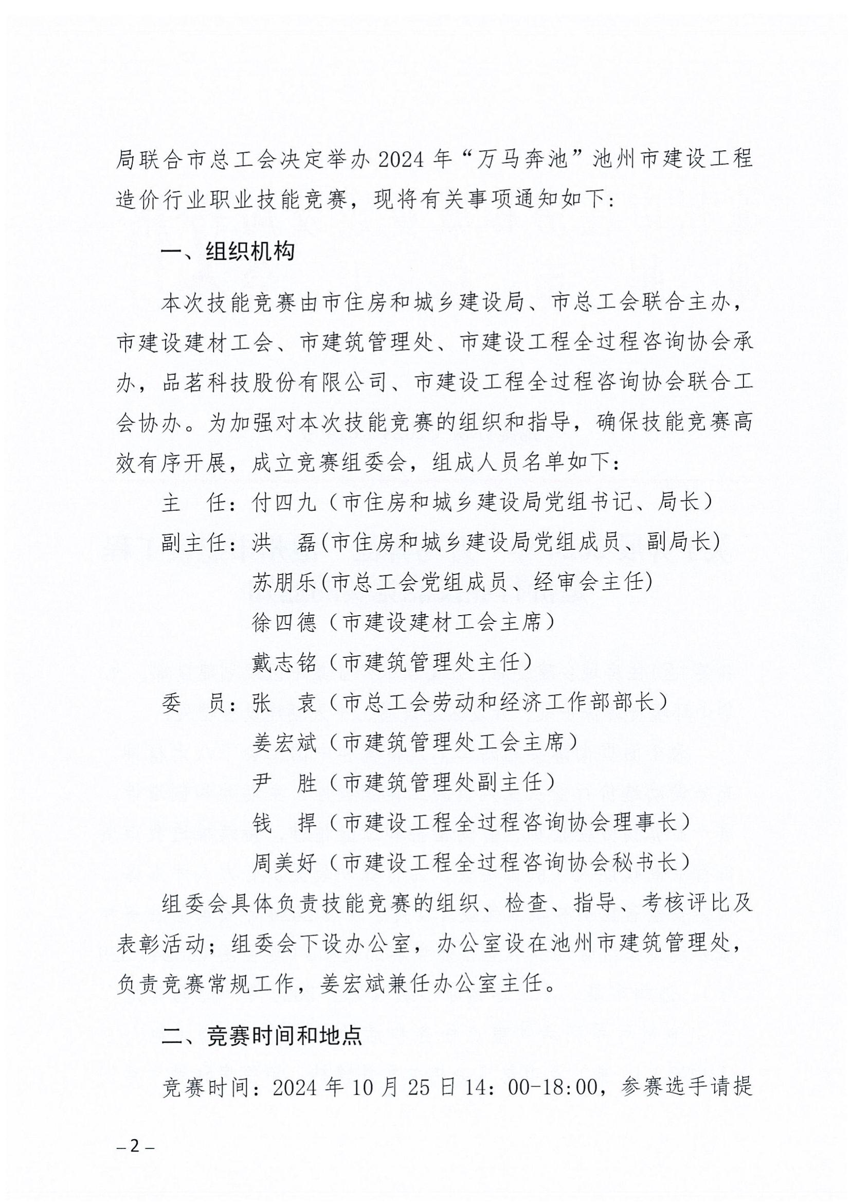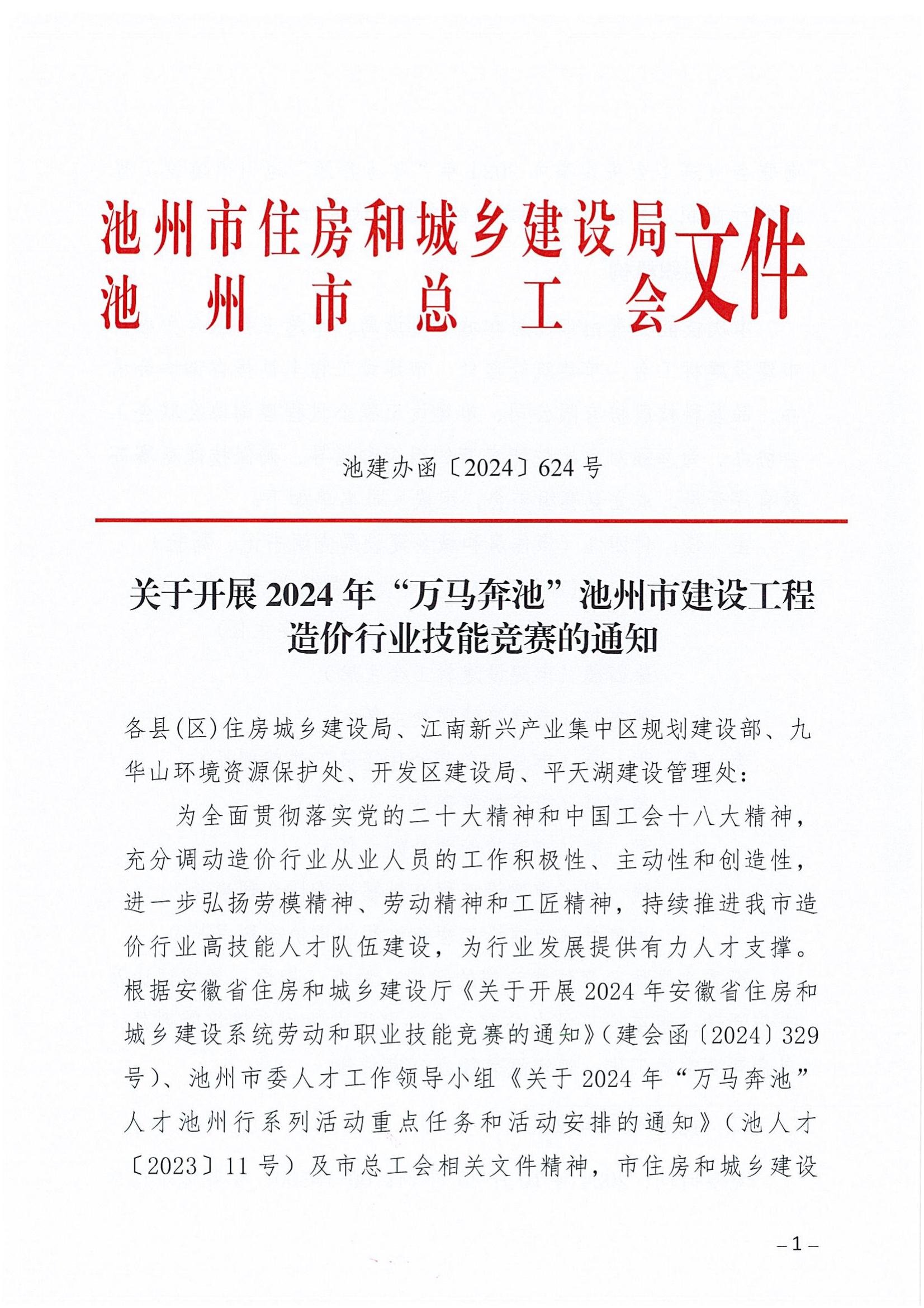 池州市住建局、池州市总工会关于开展 2024年“万马奔池”池州市建设工程造价行业技能竞赛的通知