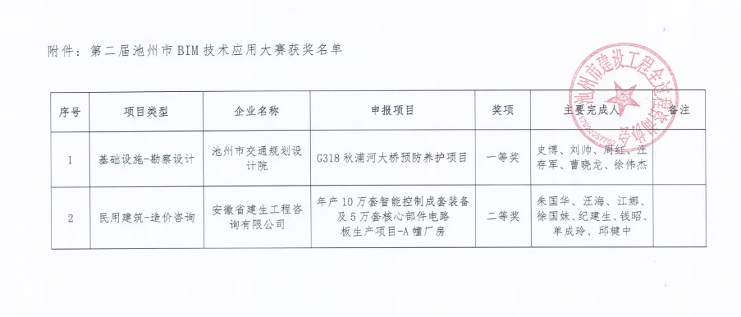 关于公布第二届池州市BIM技术应用大赛获奖名单的通知