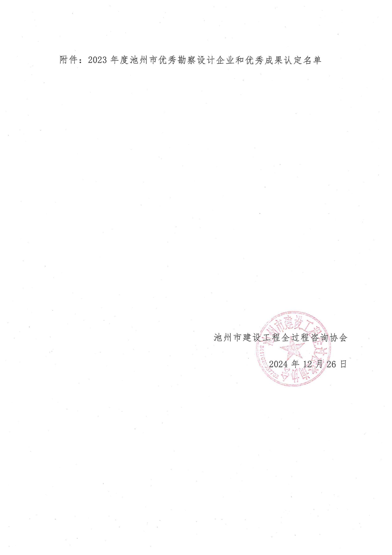2023年度池州市优秀勘察设计企业和优秀成果认定名单的公示