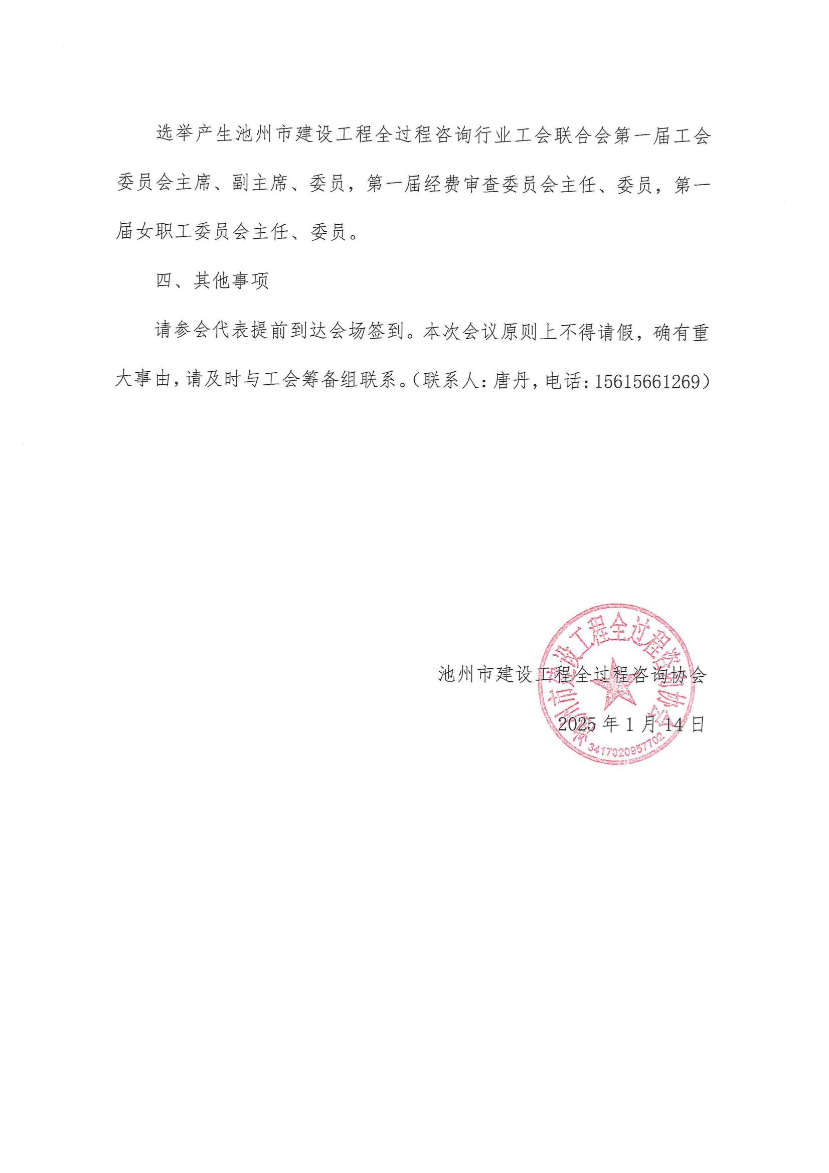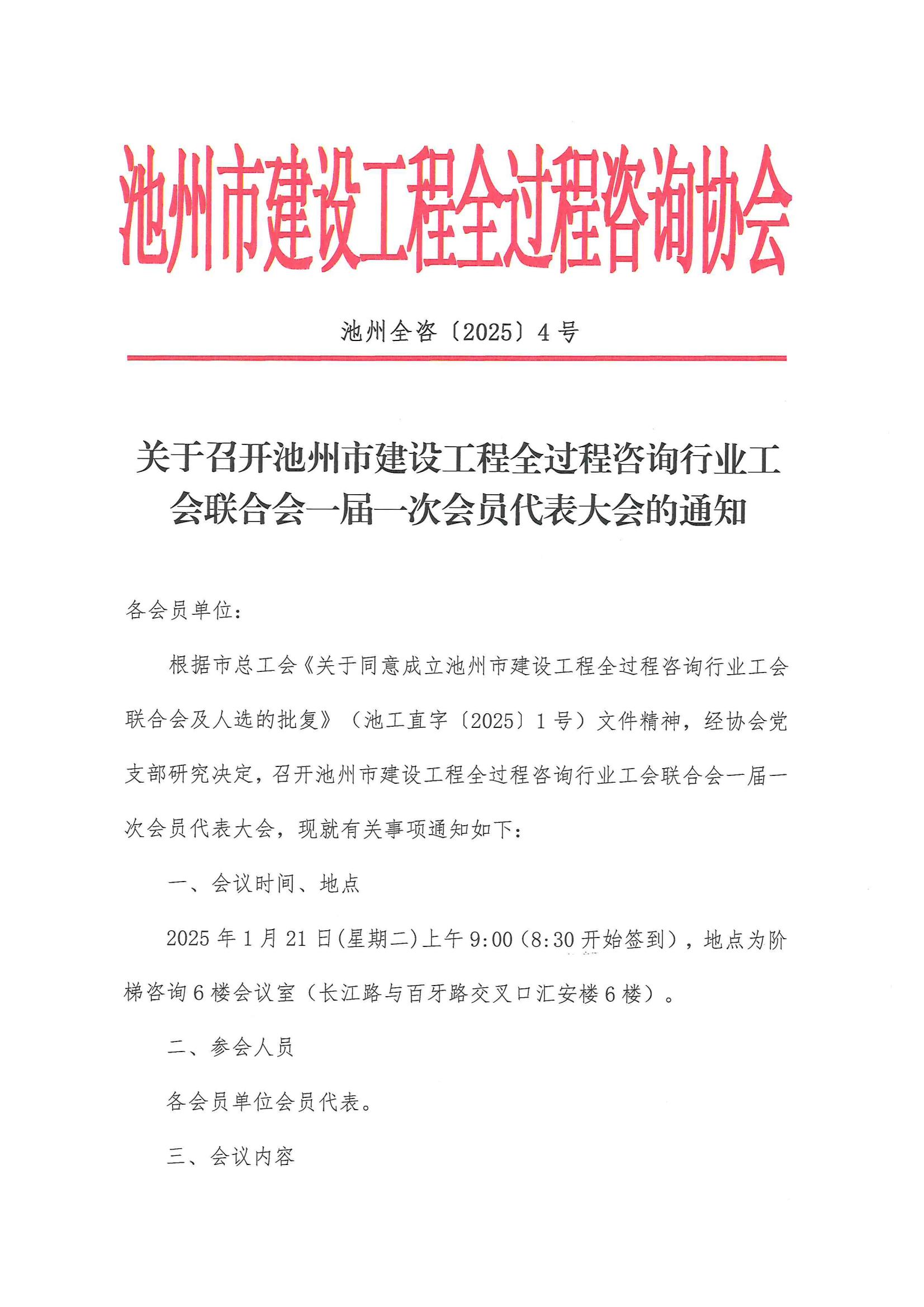 关于召开池州市建设工程全过程咨询行业工会联合会一届一次会员代表大会的通知