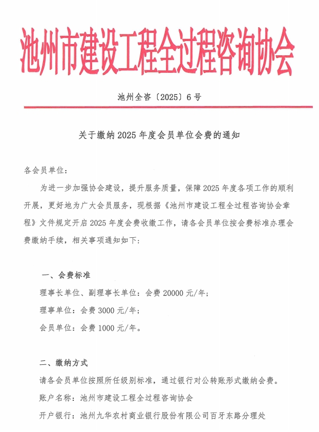 关于缴纳2025年度会员单位会费的通知