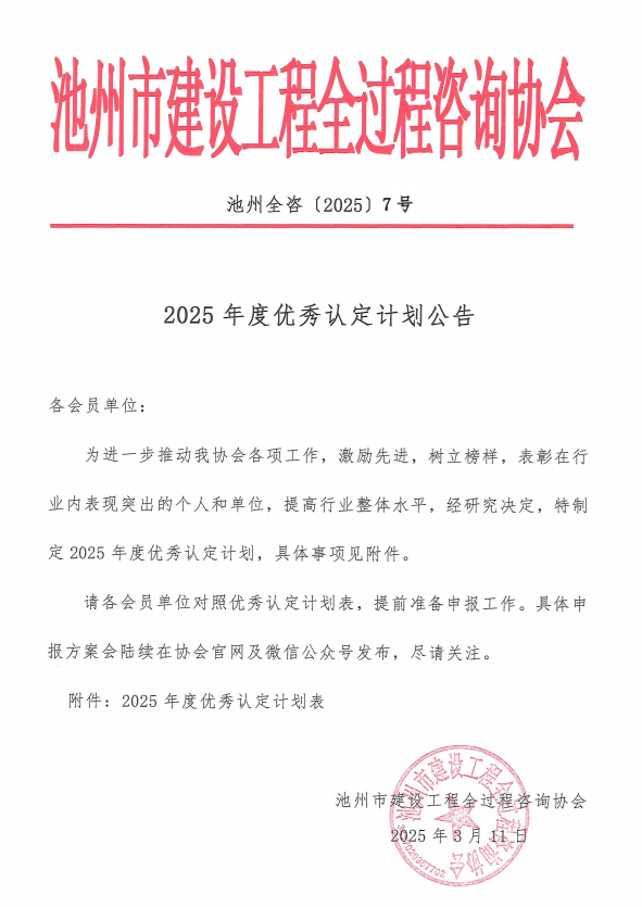 池州市住建局关于开展2025年度池州市建设工程“九华山杯”(市优质工程)认定工作的通知