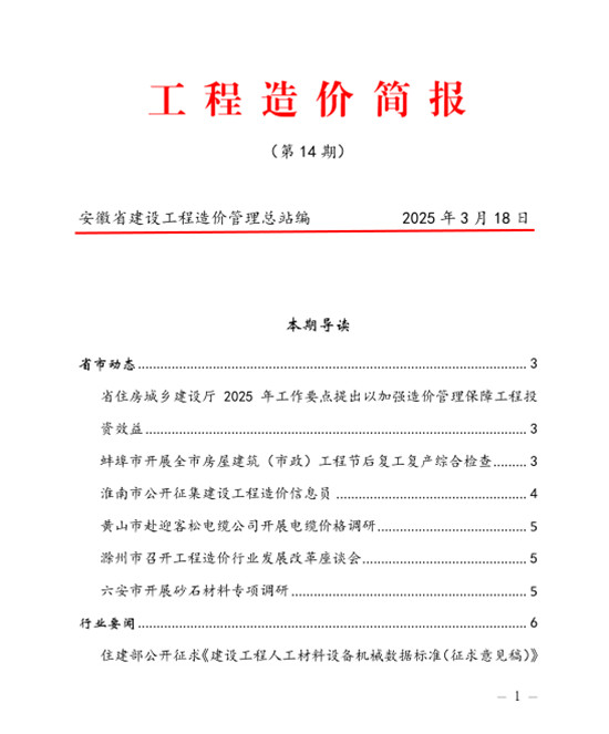 安徽省建设工程造价管理总站《工程造价简报》第14期