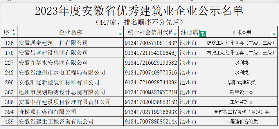 附件:2023年度安徽省优秀建筑业企业公示名单