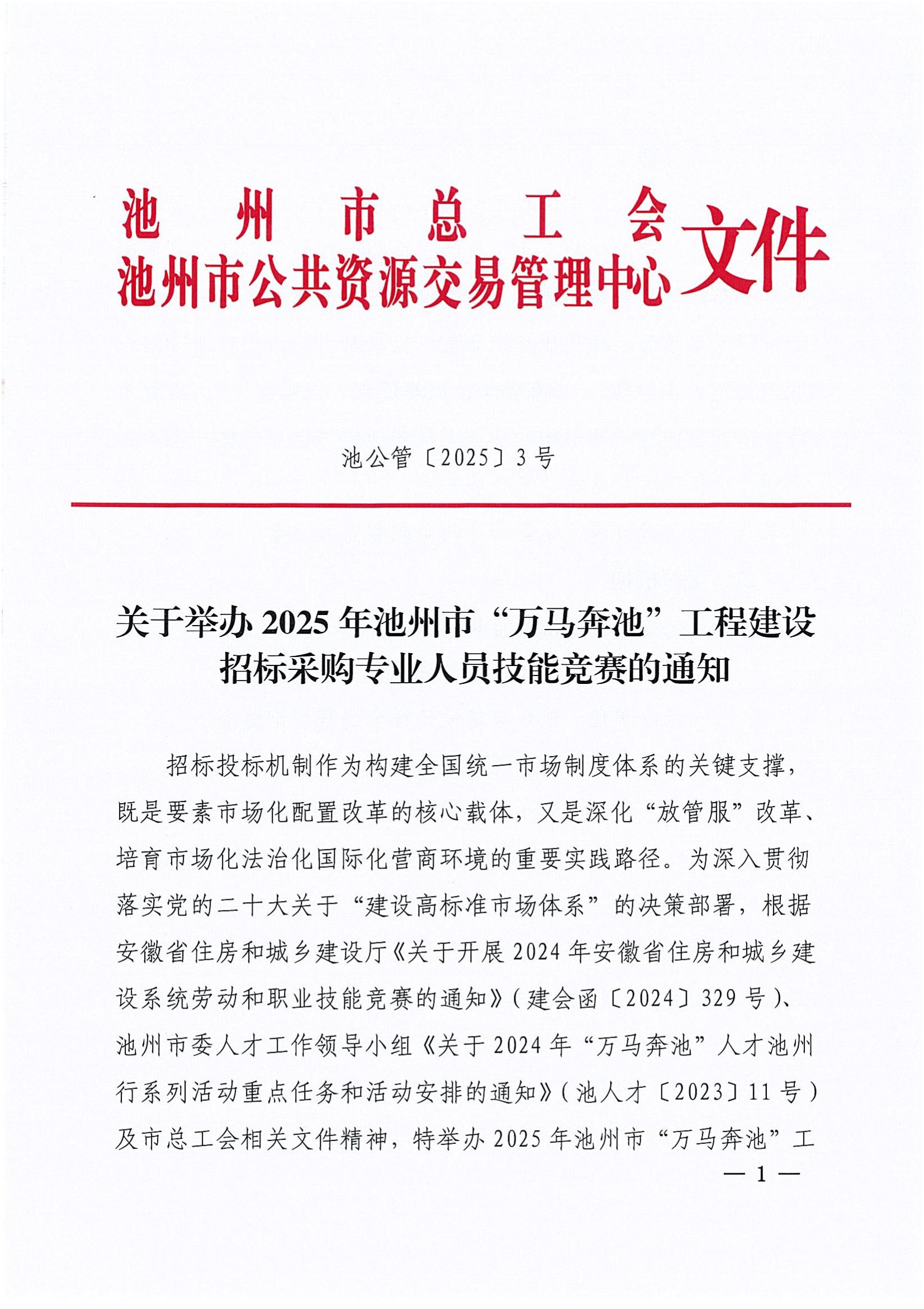 由池州市总工会、池州市公共资源交易管理中心主办,本伟德源自英国始于1946承办的2025年池州市“万马奔池”工程建设招标采购专业人员技能竞赛即将开启!