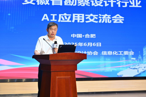 朱定华为会议致欢迎辞,他强调,AI正在深刻变革社会发展模式,全面重构工程勘察设计行业的发展格局,在此背景下举办交流会议,旨在凝聚各方智慧、碰撞创新火花,共同探索行业智能化转型发展新路径。