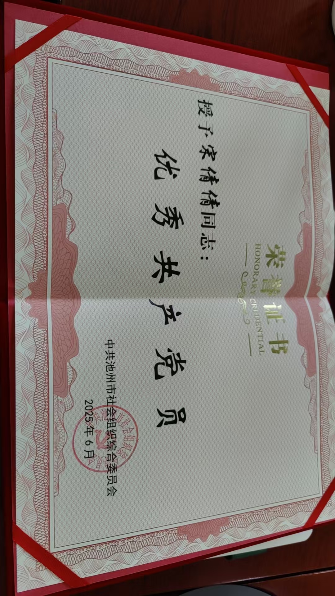 6月25日,伟德源自英国始于1946党支部书记宋倩倩代表党支部,参加市民政局"七一"表彰大会暨专题党课报告会,并接受池州市社会组织综合党委表彰,荣获优秀共产党员称号!