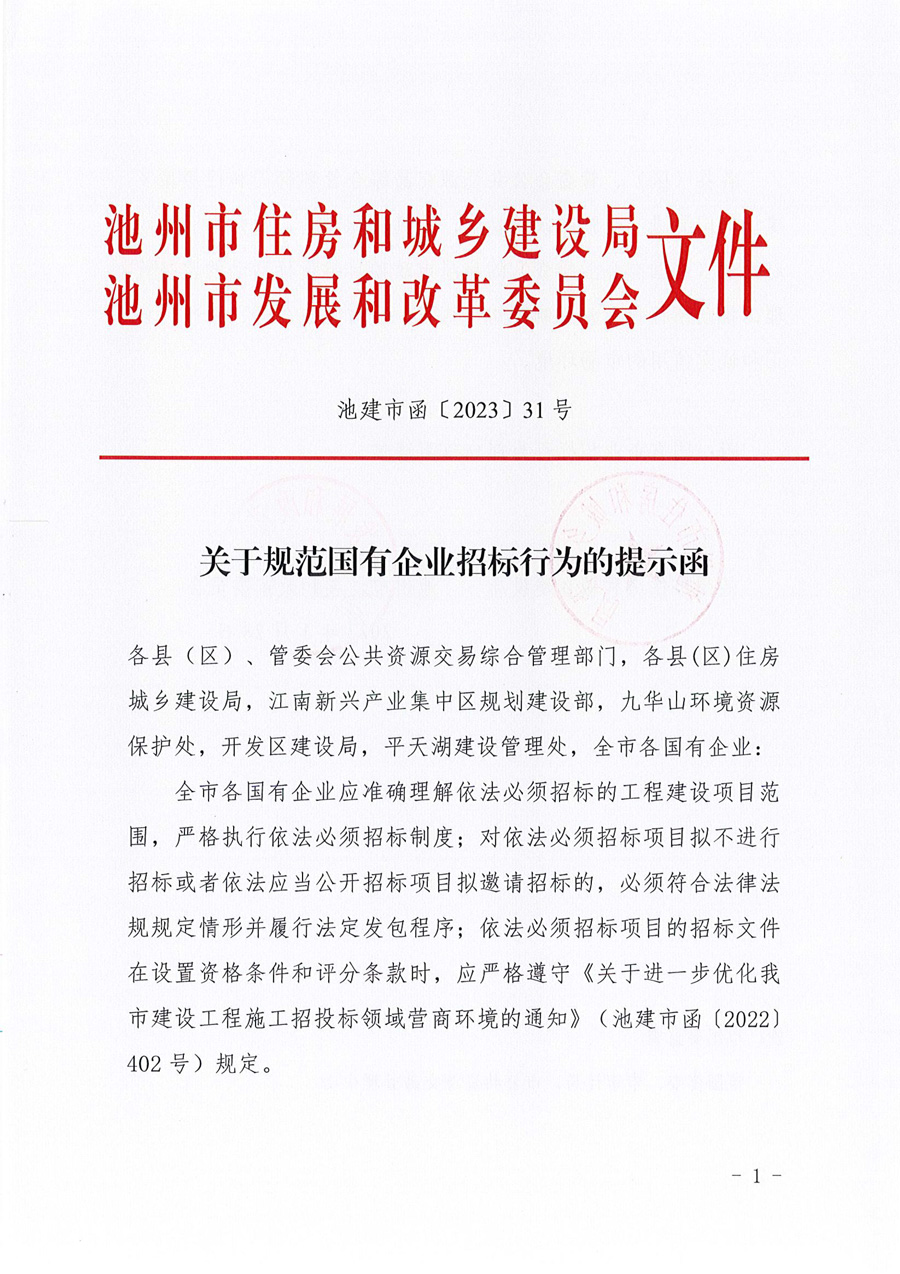 关于规范国有企业招标行为的提示函