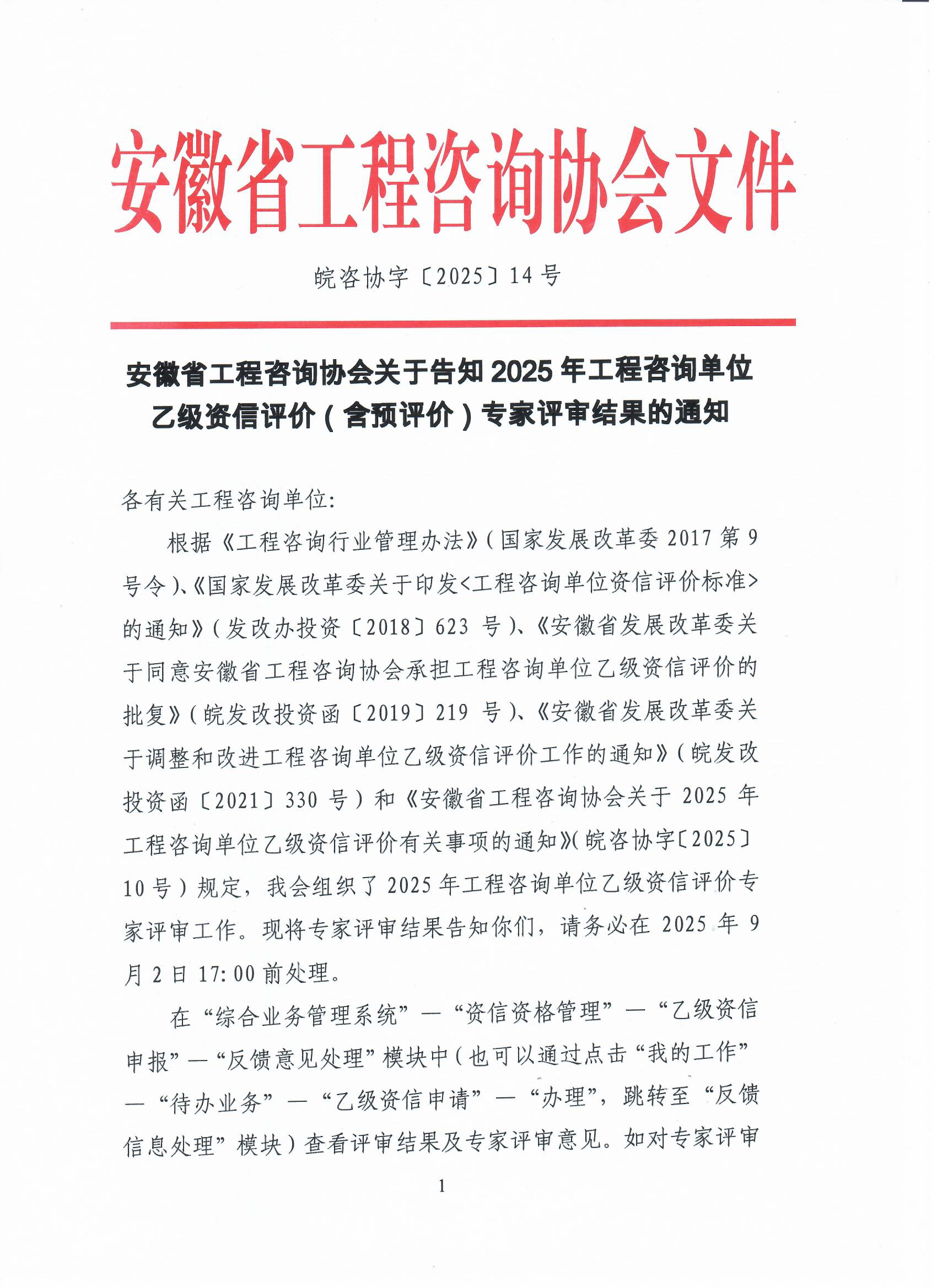 安徽省工程咨询伟德源自英国始于1946关于告知2025年工程咨询单位乙级资信评价(含预评价)专家评审结果的通知