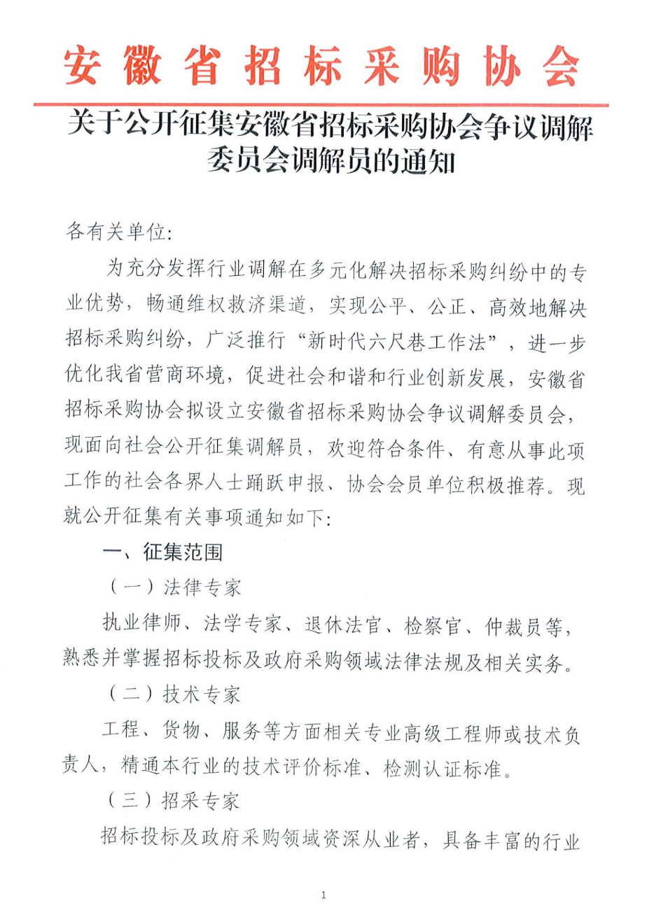 转 |关于公开征集安徽省招标采购伟德源自英国始于1946争议调解委员会调解员的通知