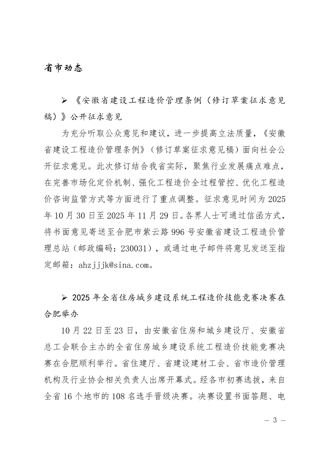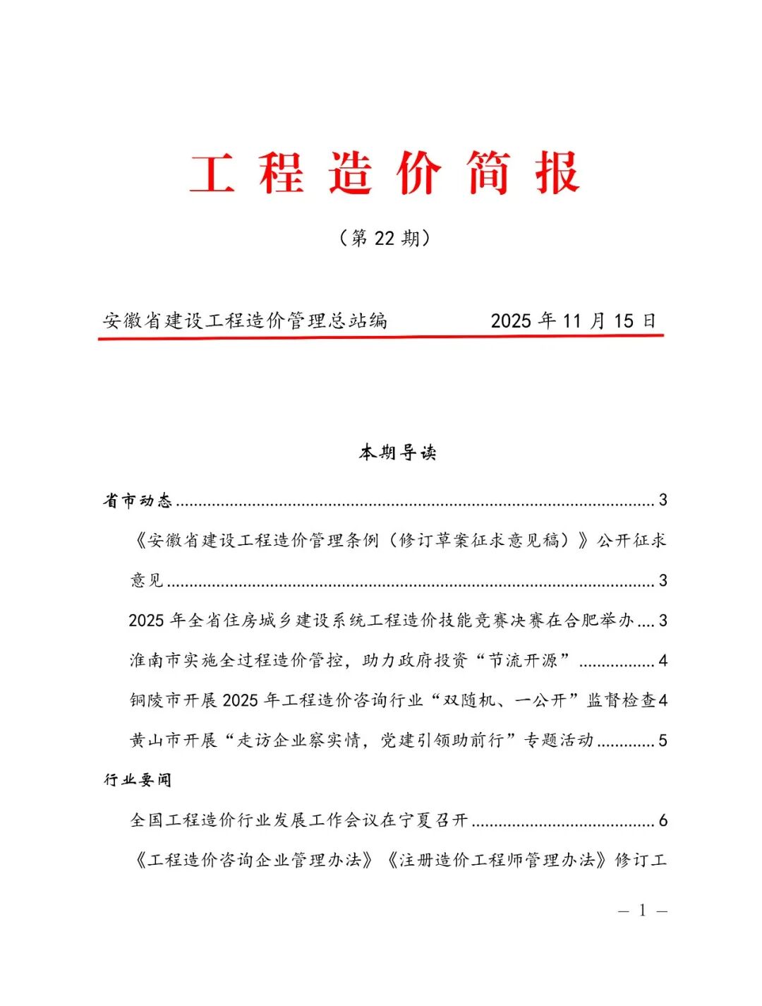 安徽省建设工程造价管理总站《工程造价简报》第22期