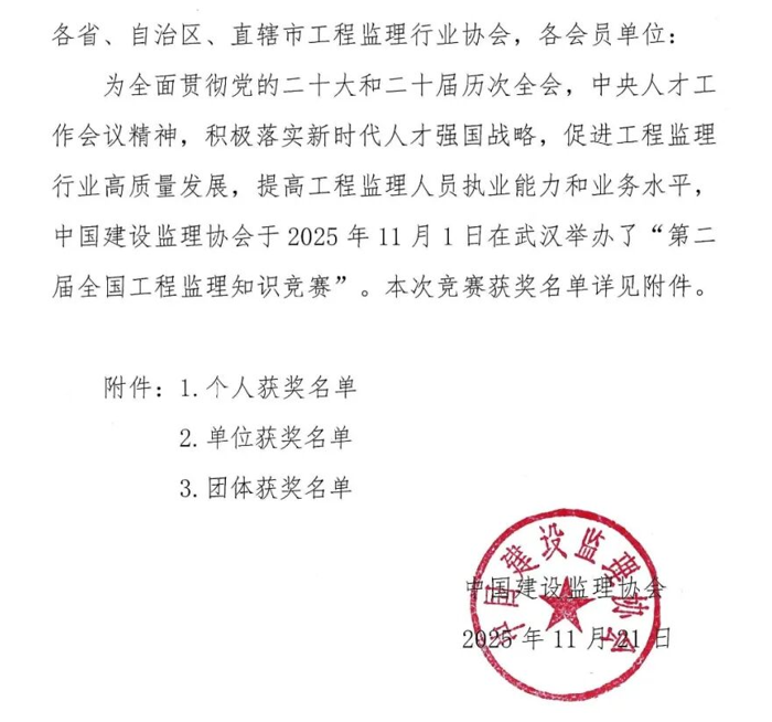 关于公布第二届全国工程监理知识竞赛获奖名单的通知