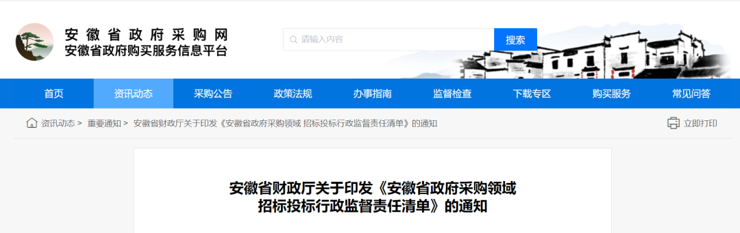 安徽省财政厅印发《安徽省政府采购领域招标投标行政监督责任清单》