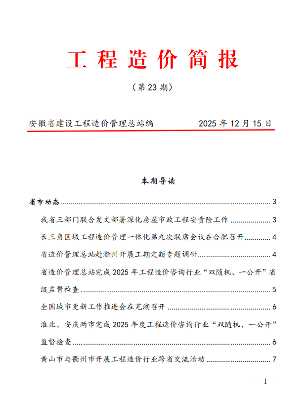 安徽省建设工程造价管理总站《工程造价简报》第23期