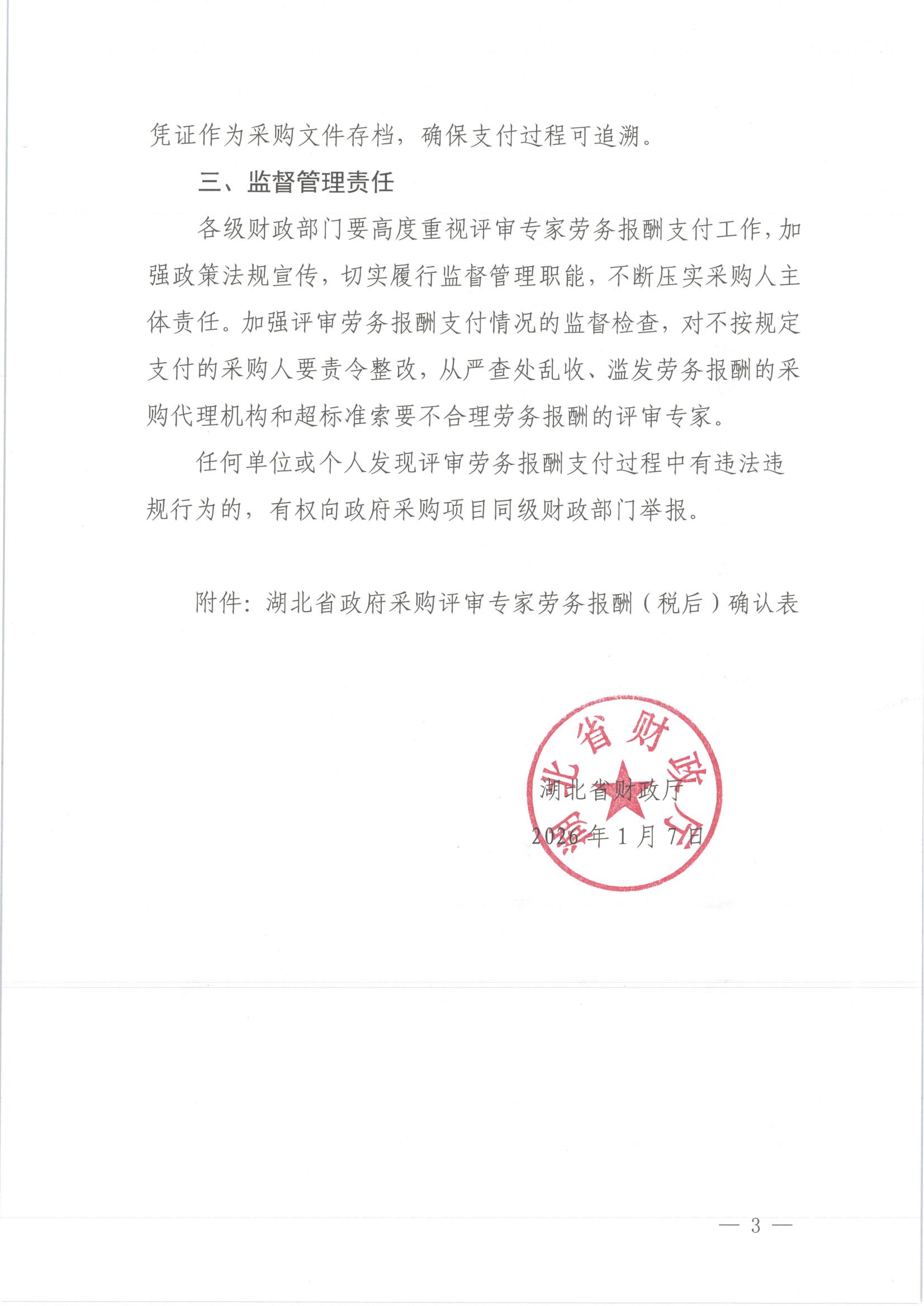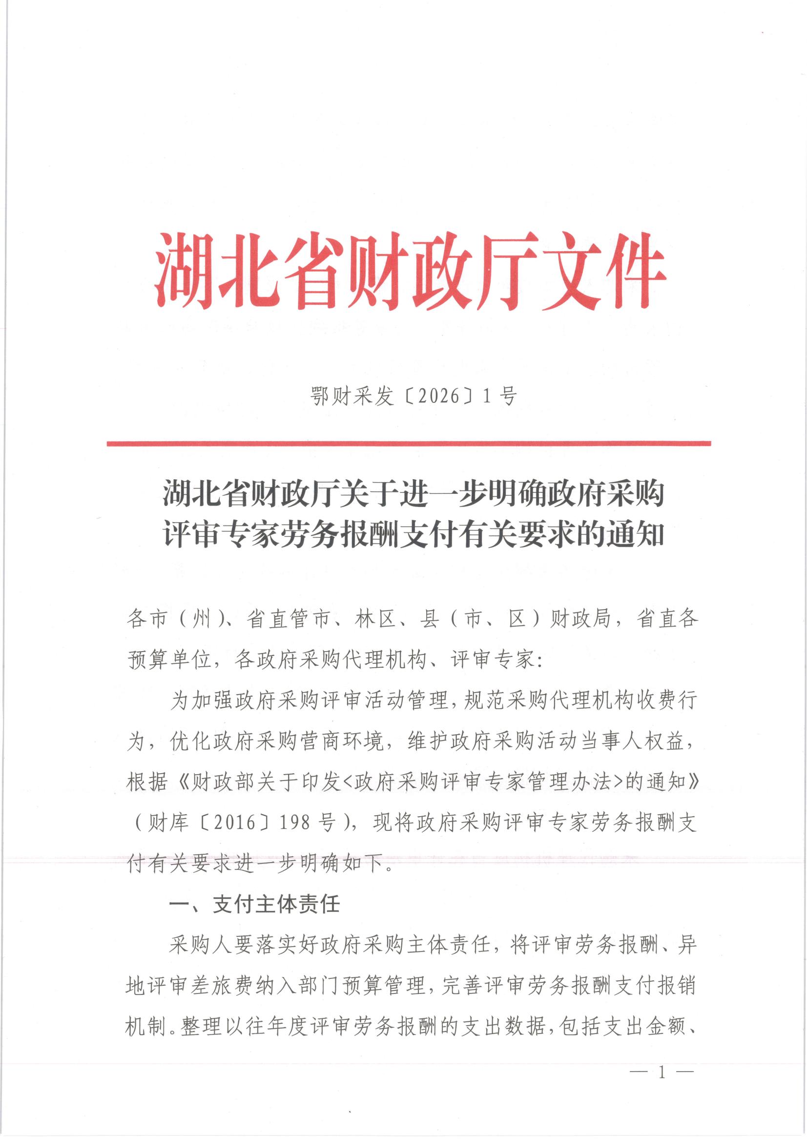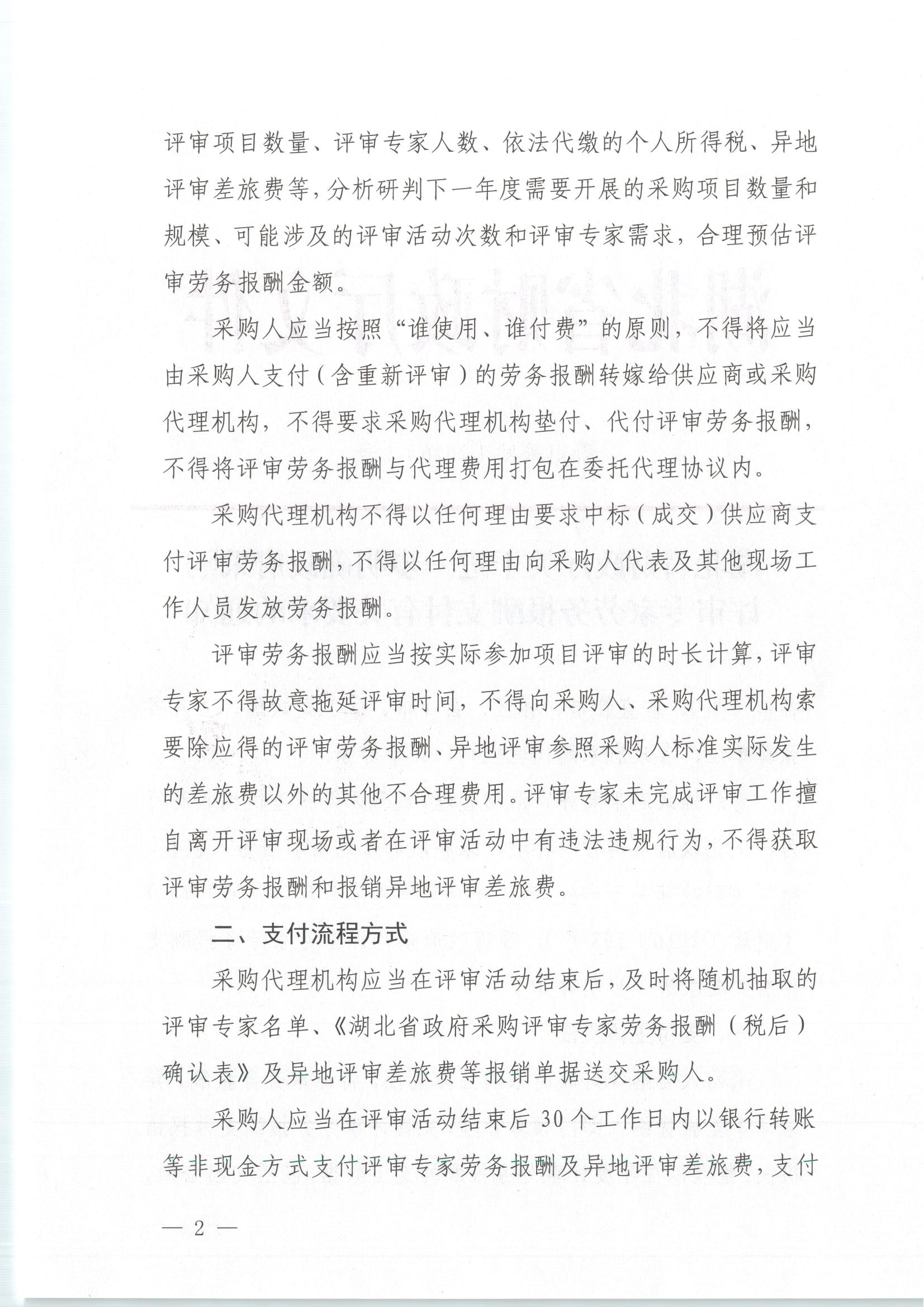 湖北省财政厅发布《关于进一步明确政府采购评审专家劳务报酬支付有关要求的通知》